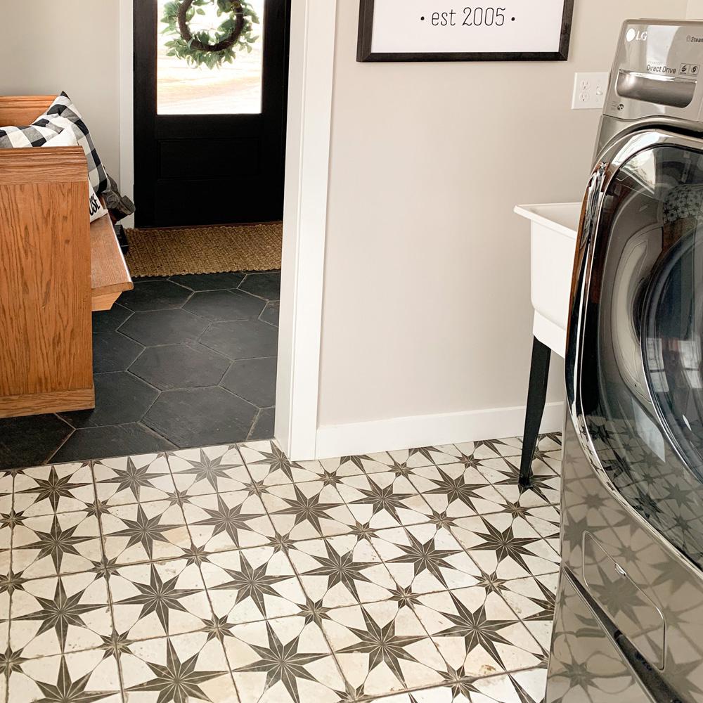 Patterned Floor Tiles Utility - The Laundry Room Floor Jenna Kate At Home / Yes, the good ole' grid tile pattern may be the most basic, but that doesn't mean it's out of style.. Selecting the pattern for the installation of your new tiles has never been easier. Coventry grey patterned floor tiles are a lovely choice for grey kitchen tiles or grey tiled bathrooms and hallways. With such an exciting array of tiles, it is sometimes difficult for our clients to decide which is the right one for their particular project. Download all pbr maps and use them even for commercial projects. Choose an overall pattern, a centre pattern with plain border for a rug effect or simply a patterned border to frame a room.