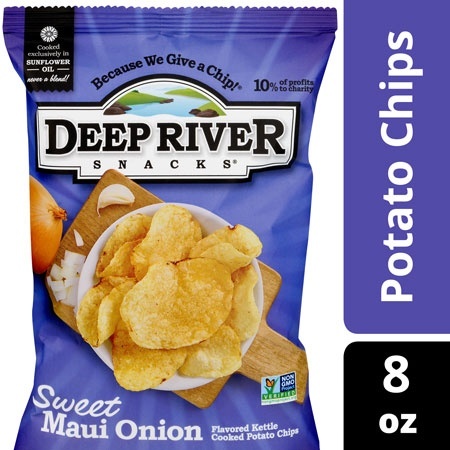 Potato chips, sweet maui onion, kettle cooked. The % daily value (dv) . Save when you order deep river snacks kettle cooked potato chips sweet maui onion and thousands of other foods from giant online. 150 calories, nutrition grade (d plus), problematic ingredients, and more. Deep river snacks, potato chips, kettle cooked, sweet maui onion (5 oz).